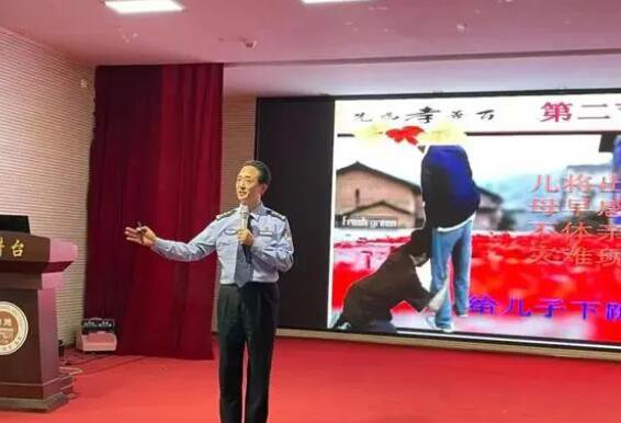 品德講座中,劉德興警官從「什麽是孝」論題下手,由「養父母之身」「養父母之心」「養父母之誌」「養父母之智慧」四個方面對中國傳統孝文化進行深化闡釋。用感動中國女孩孟佩傑等生動事例教導同學們盡子女之責,愛惜身邊人。情到深處,在場的教師、學生被劉警官的深情講授打動,陣陣掌聲不斷。